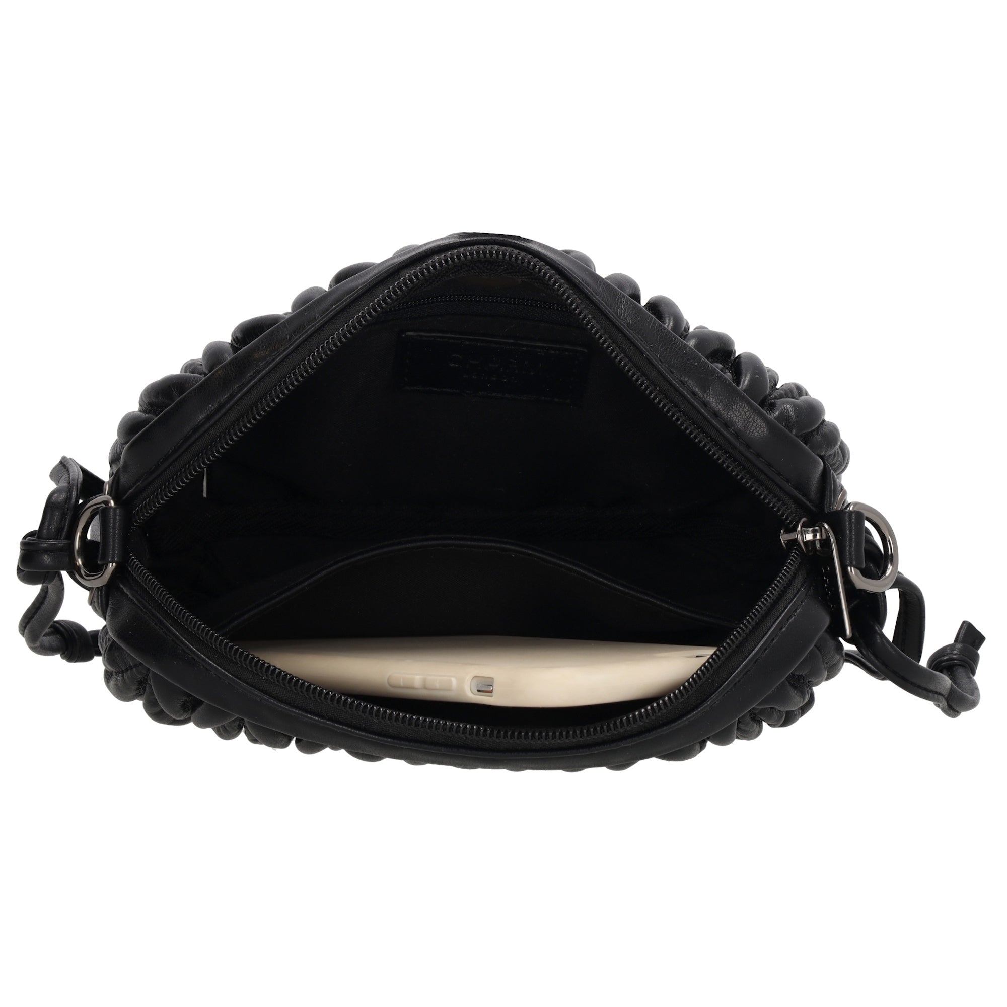 • Interior con bolsillo para el teléfono y pequeño bolsillo con cremallera