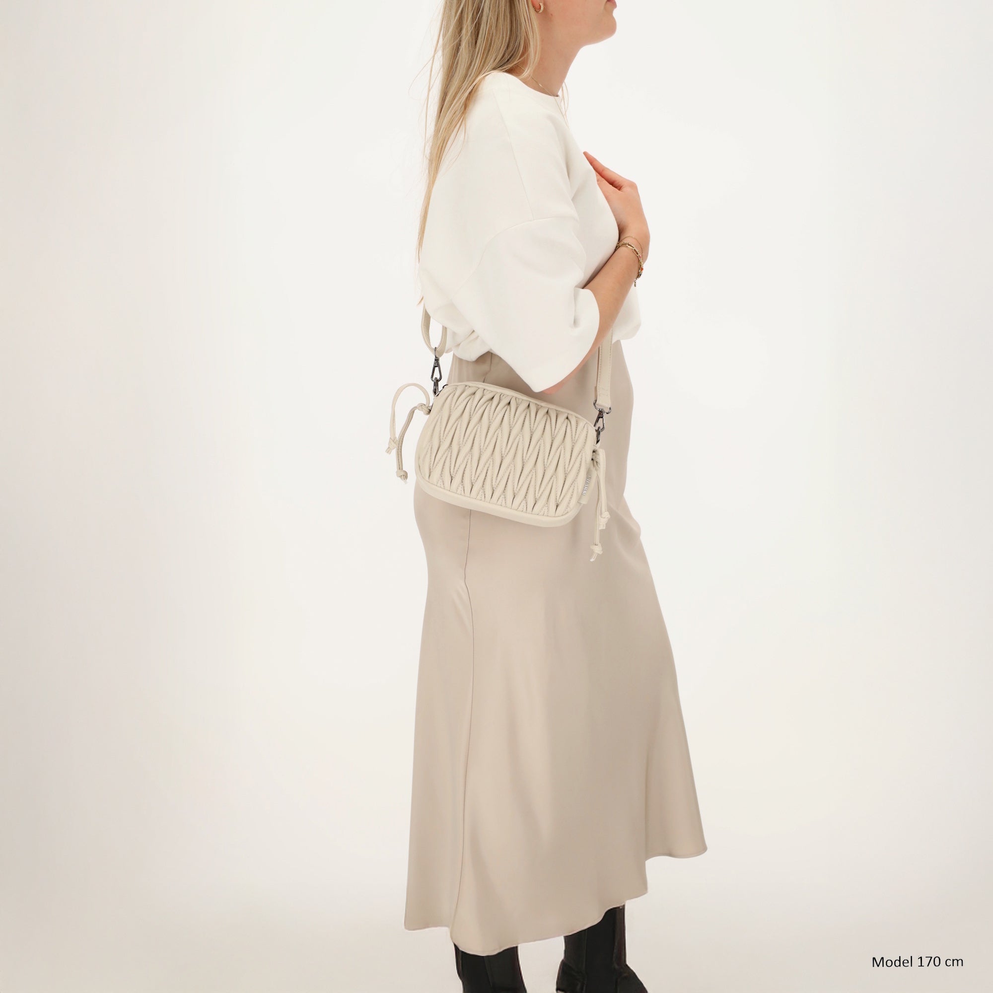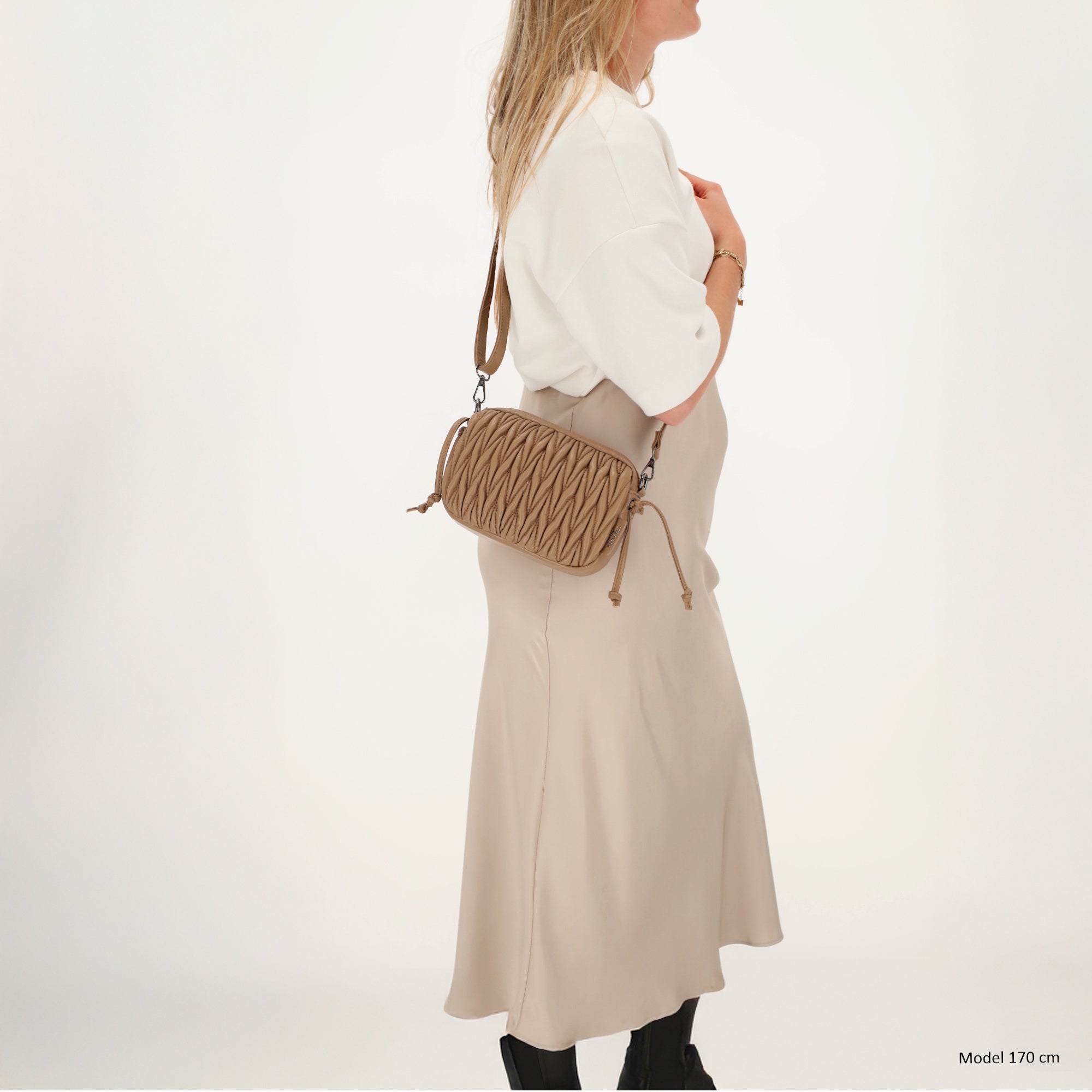 Gracias a la cremallera sus pertenencias están guardadas de forma segura. En su interior encontrará un práctico bolsillo del teléfono y uno pequeño bolsillo con cremallera para tus elementos esenciales más importantes. con el correa de hombro ajustable y extraíble Puedes llevar el bolso exactamente como más te guste: cruzado o cómodamente colgado del hombro.