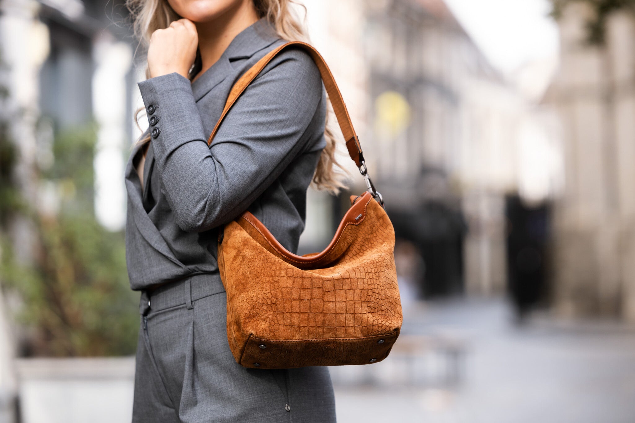 Features Berba Hobo Shoulder Bag Croco Suede:
