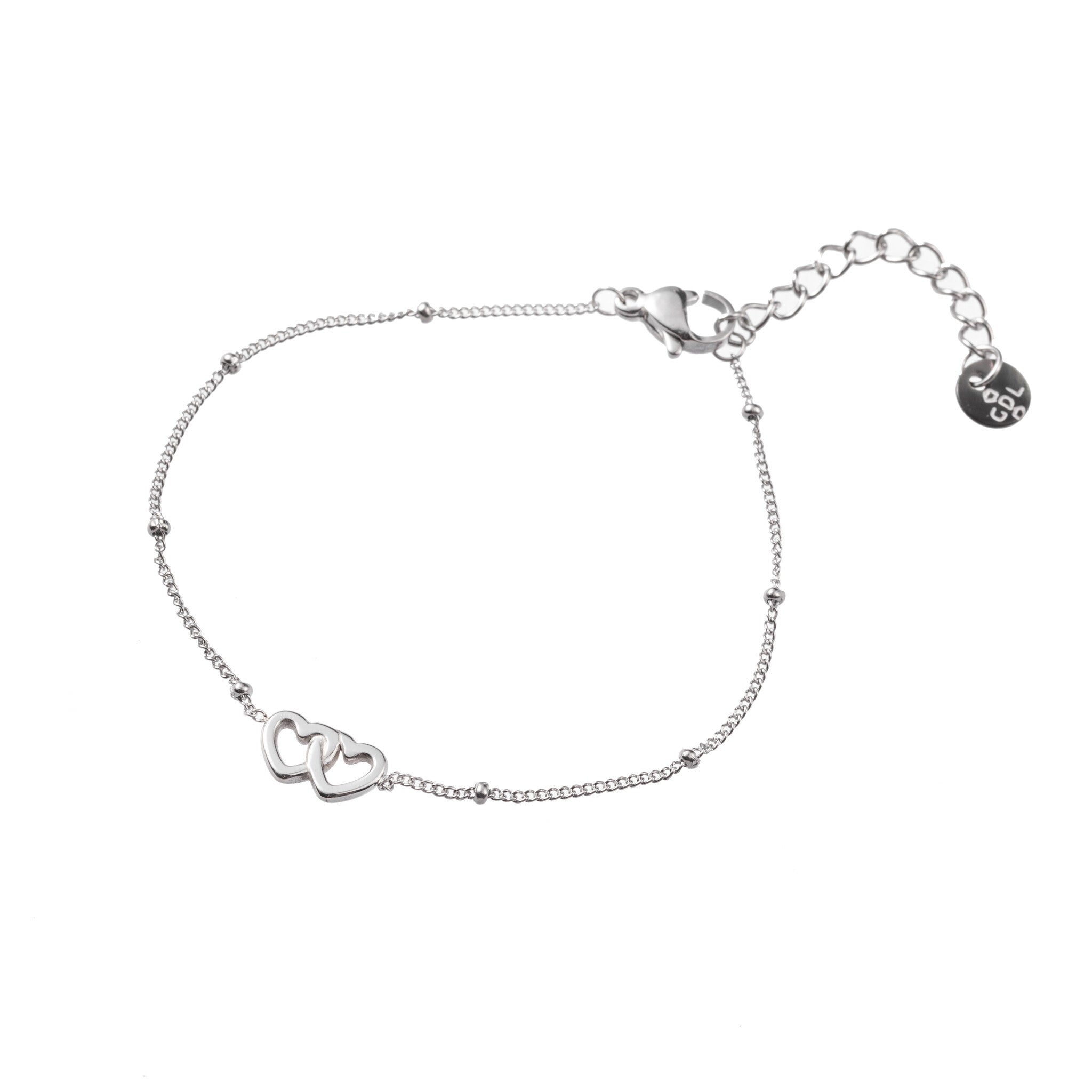 The Day & Eve 2 Small Hearts Bracelet exudes subtle charm and style. This silver-tone bracelet, made of durable stainless steel, is embellished with two intertwined hearts as a sign of love and connection. The rest of the bracelet is subtly decorated with small balls, which adds a playful and friendly accent to the whole. Wear this piece of jewelry solo for a modest elegance or combine it with other bracelets for a trendy layered look. The Day & Eve 2 Small Hearts Bracelet is a timeless accessory that easily adds a touch of romance to your style.
