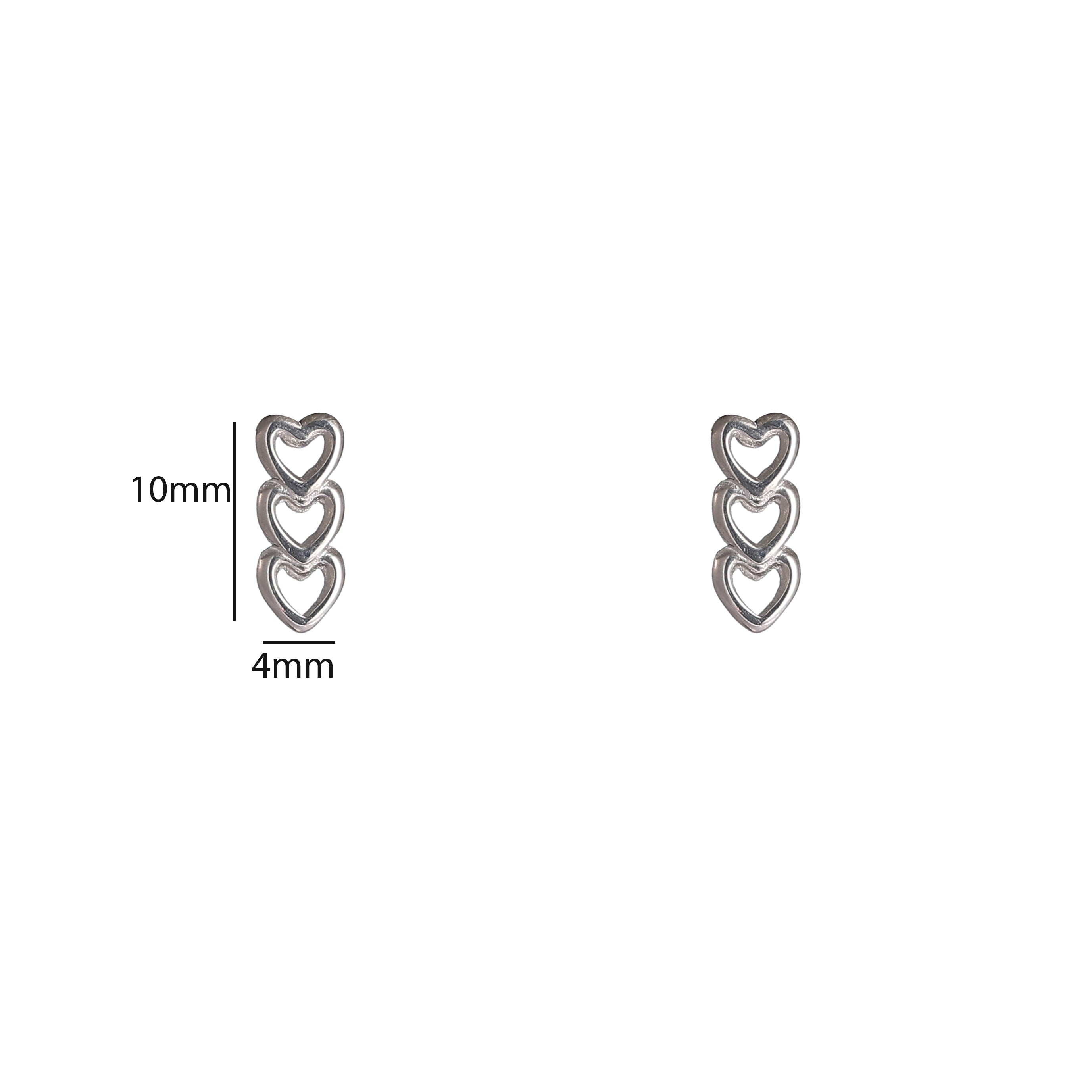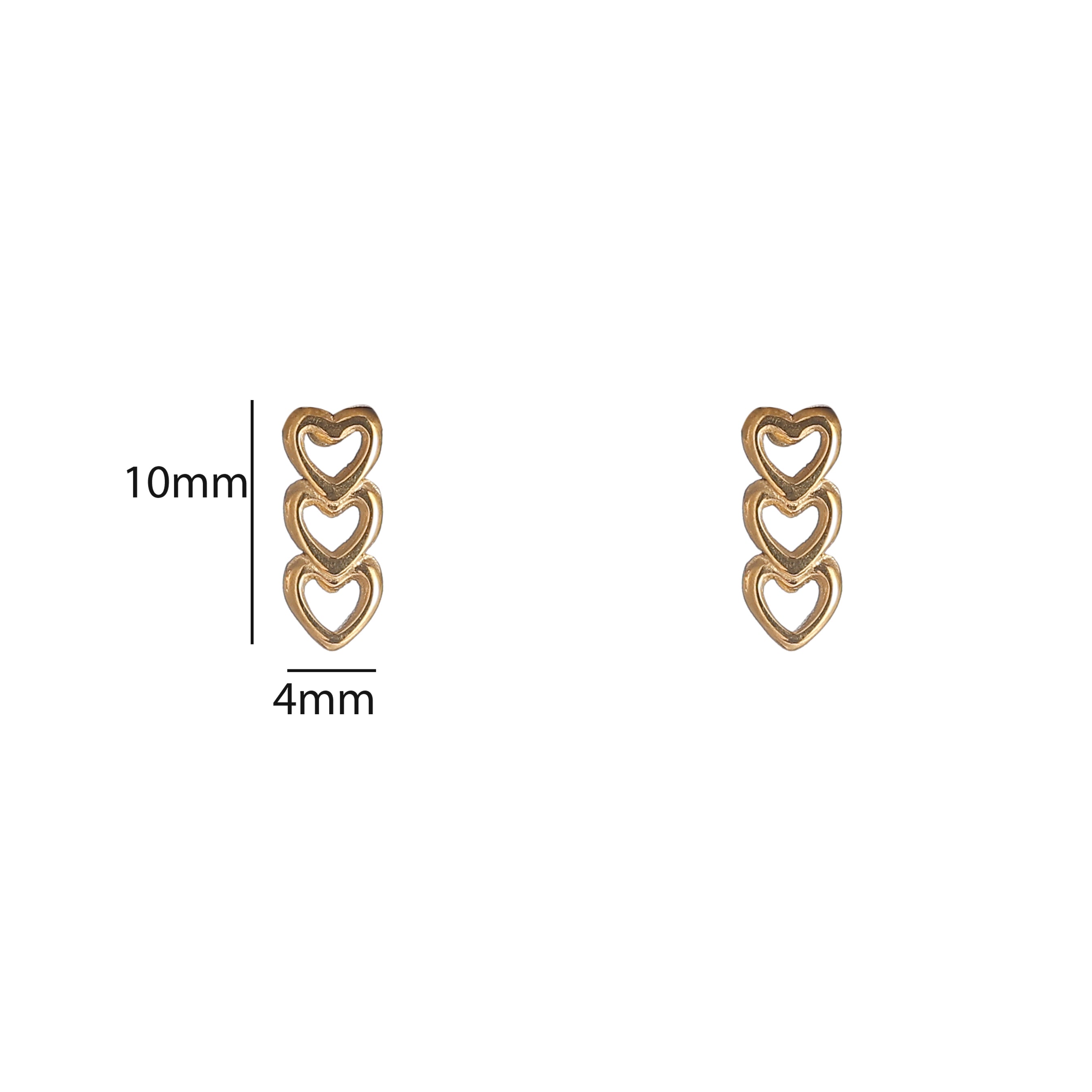 The Day & Eve 3 Hearts Stud is a charming and playful earring featuring three small hearts. Its timeless, feminine design adds a subtle, loving touch to any look. Lightweight and comfortable for everyday wear, perfect for mixing and matching with other jewelry for a stylish, layered look. Friendly, elegant, and versatile.