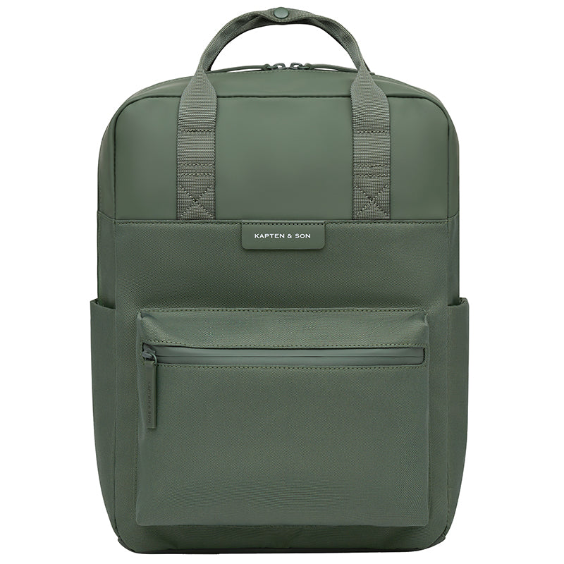 Meet the next-level backpack: the Kapten & Son Bergen Pro Dark Green 15-Inch Backpack offers 11 liters of storage space, complemented by a 15-inch laptop compartment and a microfleece tablet sleeve. Inside, you'll also find a zippered pocket and two additional slip pockets. The zippered outer pocket remains, but we've also added an anti-theft pocket on the back and enlarged the side pockets. Furthermore, the Bergen Pro is made from a high-quality, water-repellent material blend. Cleaning the backpack is now even easier, as the base is also made from vegan tech material. For added comfort, the shoulder straps and back of the backpack are ergonomically shaped and padded. Speaking of the back: this model has a suitcase attachment, allowing the Bergen Pro to accompany you even on longer trips. Rediscover the Kapten classic and add the Bergen Pro Dark Green to your life!
