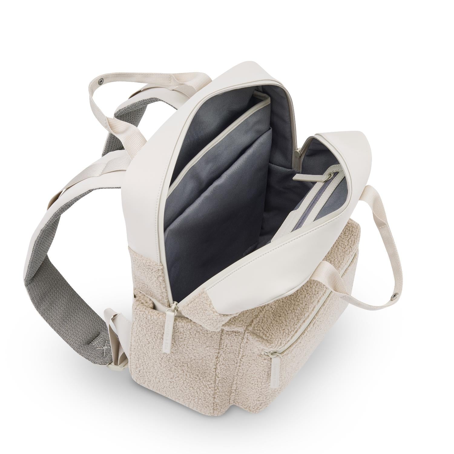 Everything changes, but our bestseller gets even better: meet the Bergen Pro Fleece . The 11-liter storage space is expanded with a 15" laptop compartment and a tablet sleeve covered in microfleece. Inside, you'll also find a zippered pocket and two additional slip pockets. The zippered outer pocket remains, but we've also added an anti-theft pocket on the back and enlarged the side pockets. Furthermore, the Bergen Pro is made of a high-quality, water-repellent material blend. Cleaning the backpack is now even easier, as the bottom is also made of vegan tech material. For added comfort, the shoulder straps and back panel are ergonomically shaped and padded. Speaking of the back panel: this model has a suitcase attachment, allowing the Bergen Pro to accompany you even on longer trips. Rediscover the Kapten classic and welcome the Bergen Pro Sandstone into your life!
