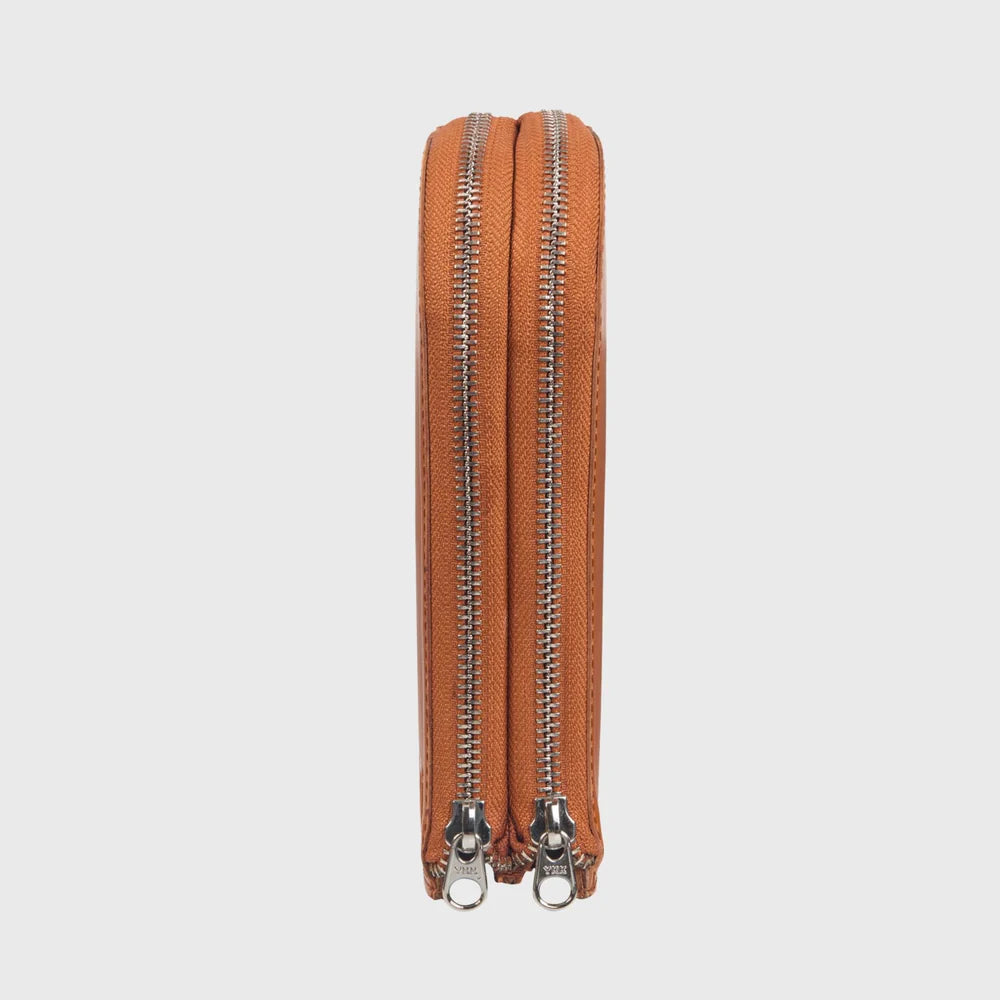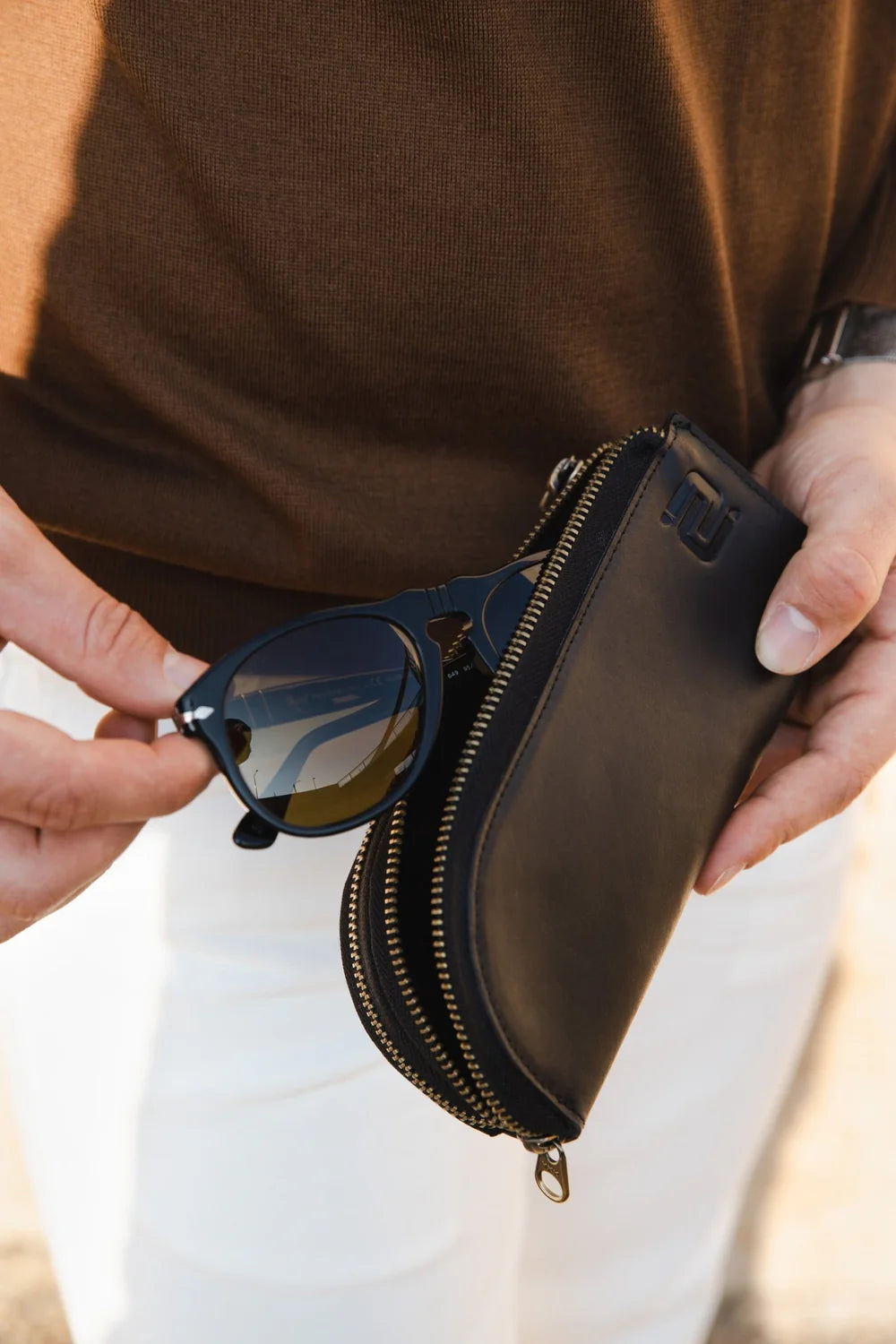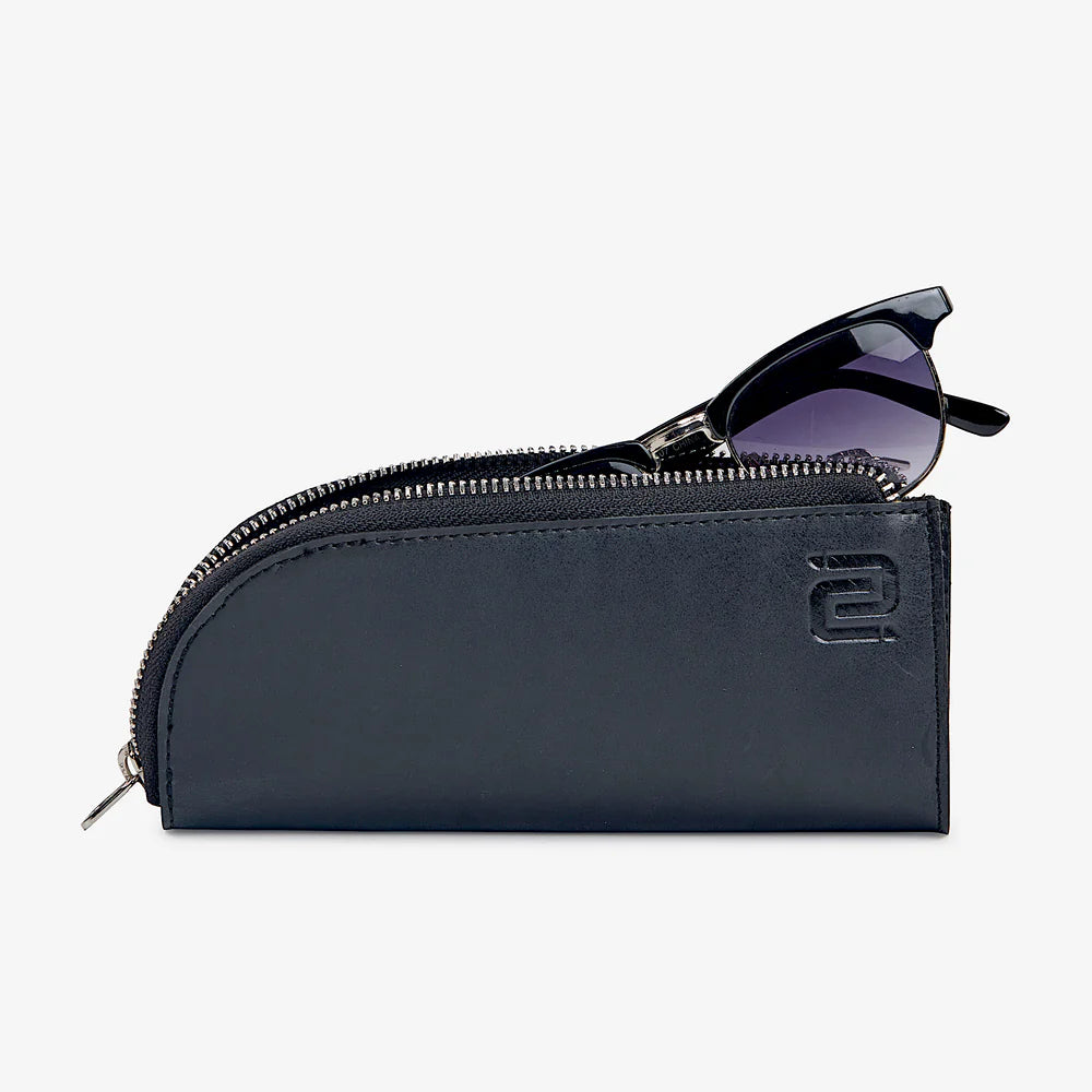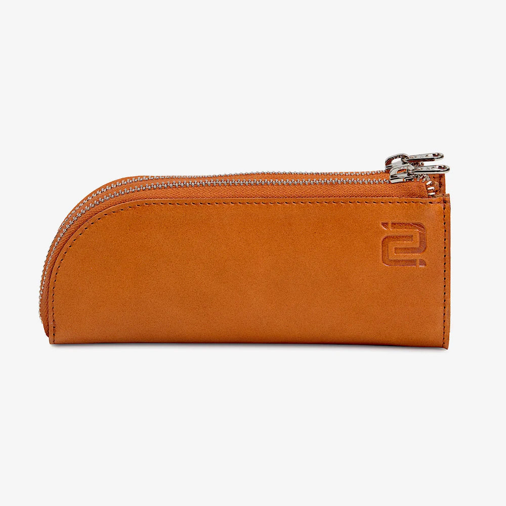 De Alpha Brillenhoes. Handgemaakt van full-grain nappaleer, elegant en stevig. Ontworpen om twee brillen compact en stijlvol te beschermen onderweg.