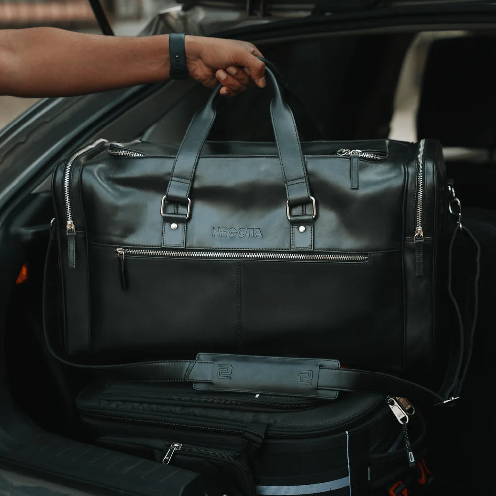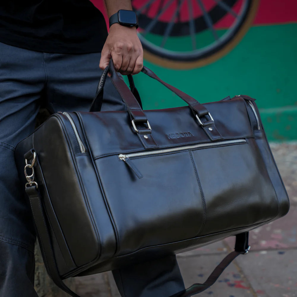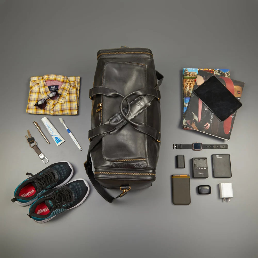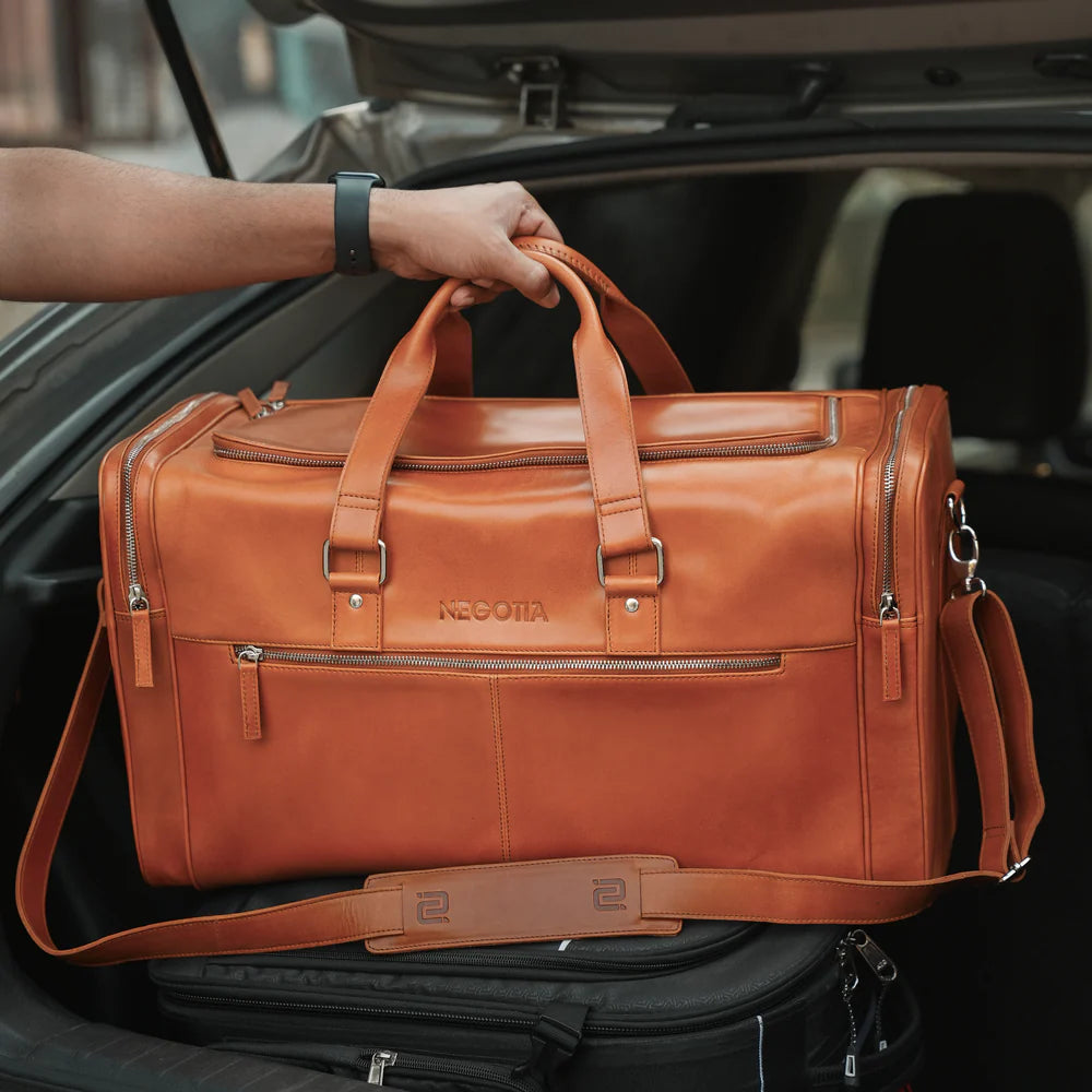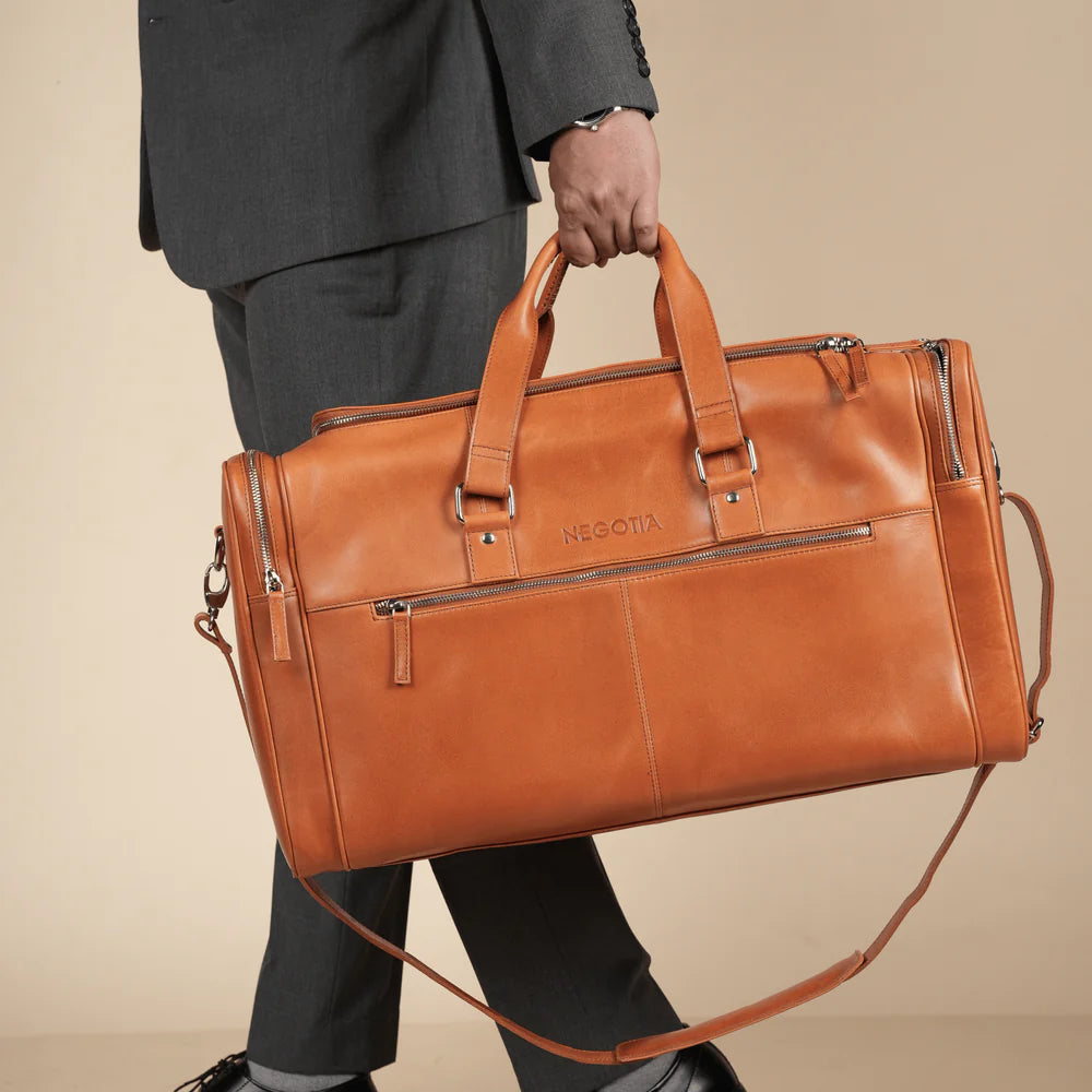 Minimalistische klasse in beweging. Een ruime tas die moeiteloos kleding, essentials en een 16” laptop meeneemt. Gemaakt van premium plantaardig gelooid leer en ontworpen voor trips die stijl vragen.