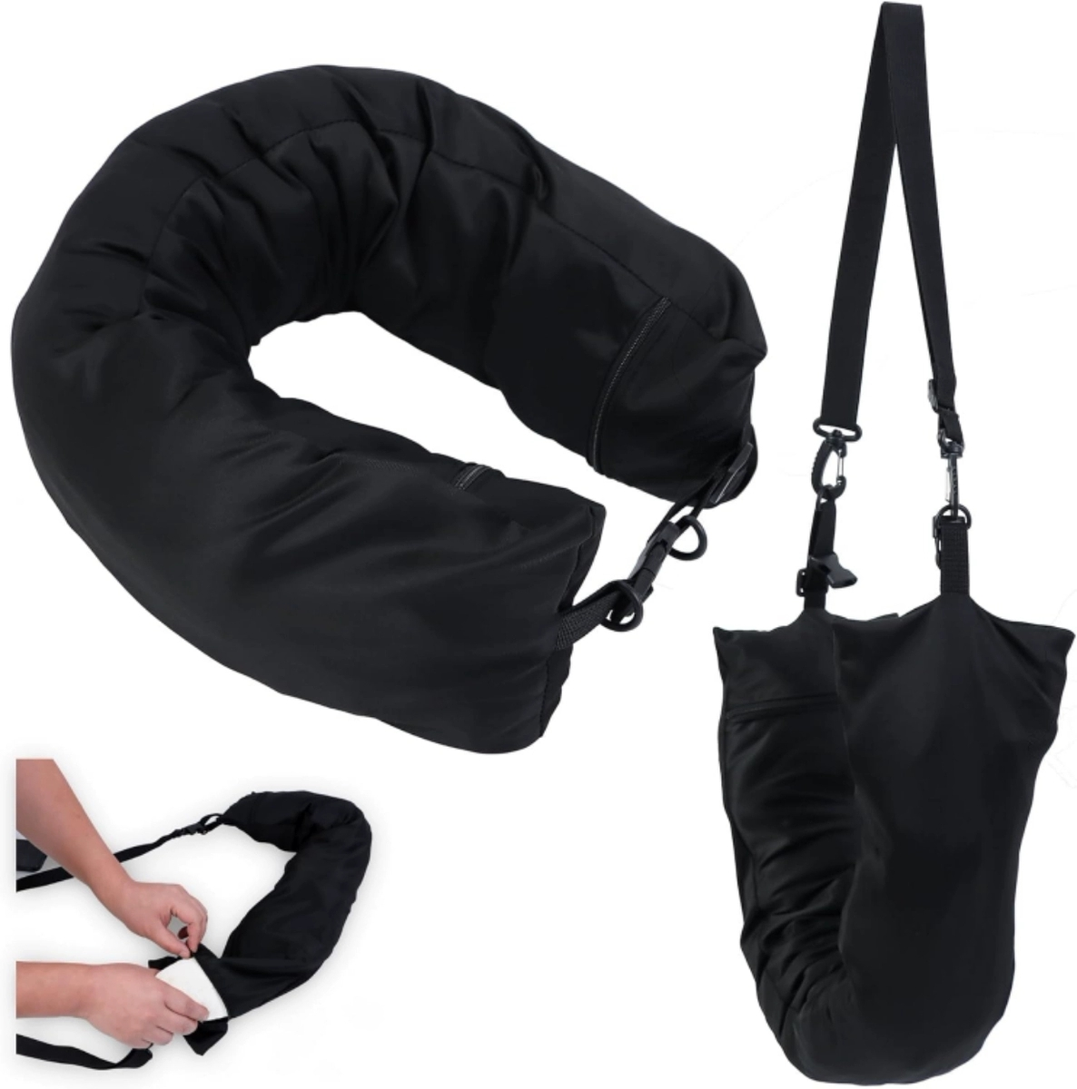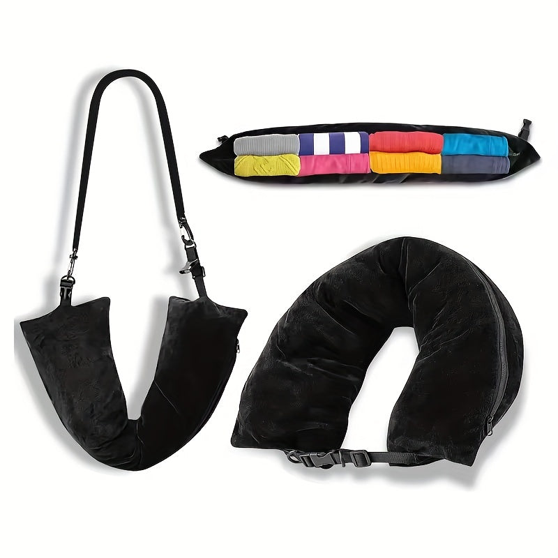 Experience ultimate comfort during your travels with the innovative fillable neck pillow from ByMetz. This smart pillow combines convenience and comfort by easily filling with clothing or other items, ideal for those who want to pack smart without checking in extra baggage.