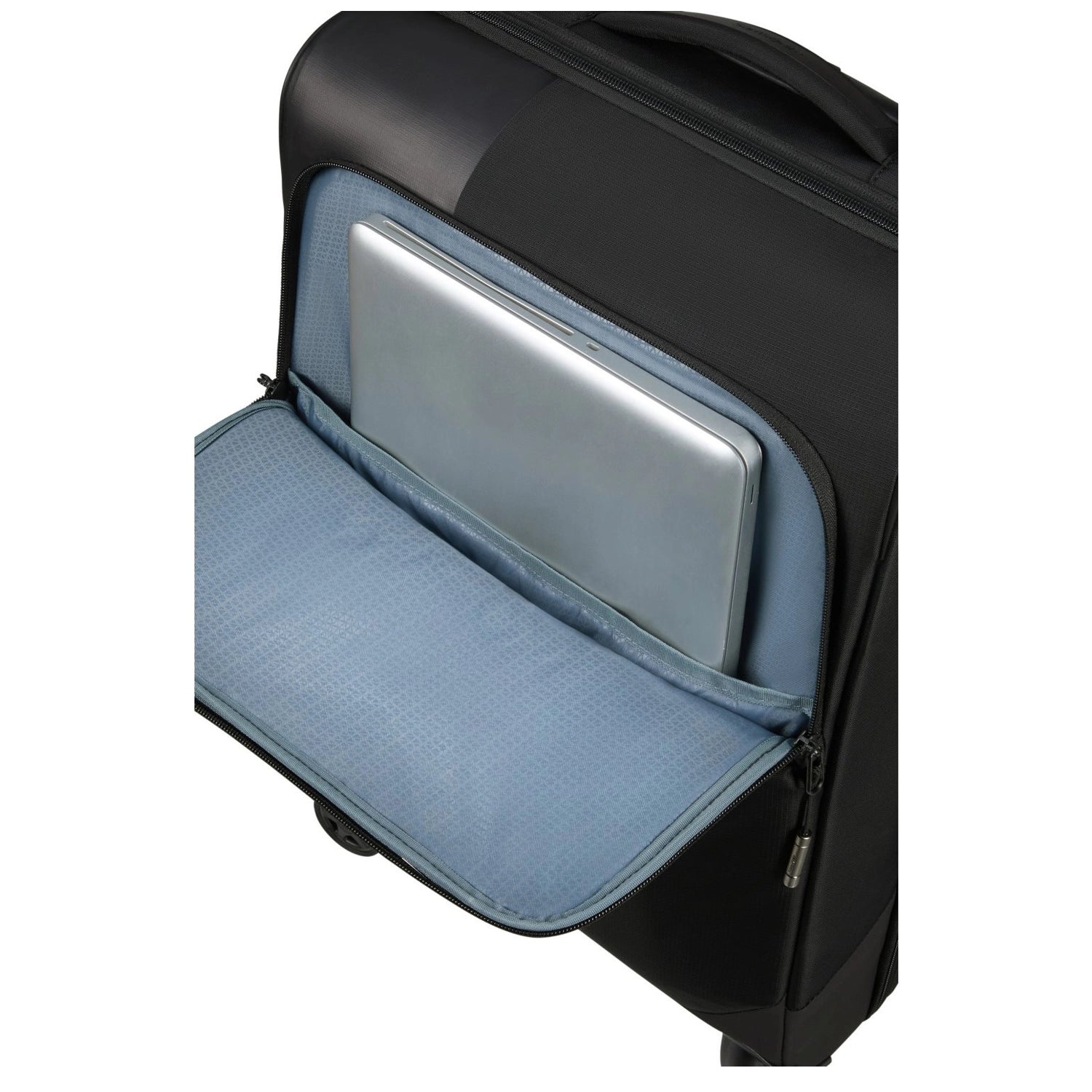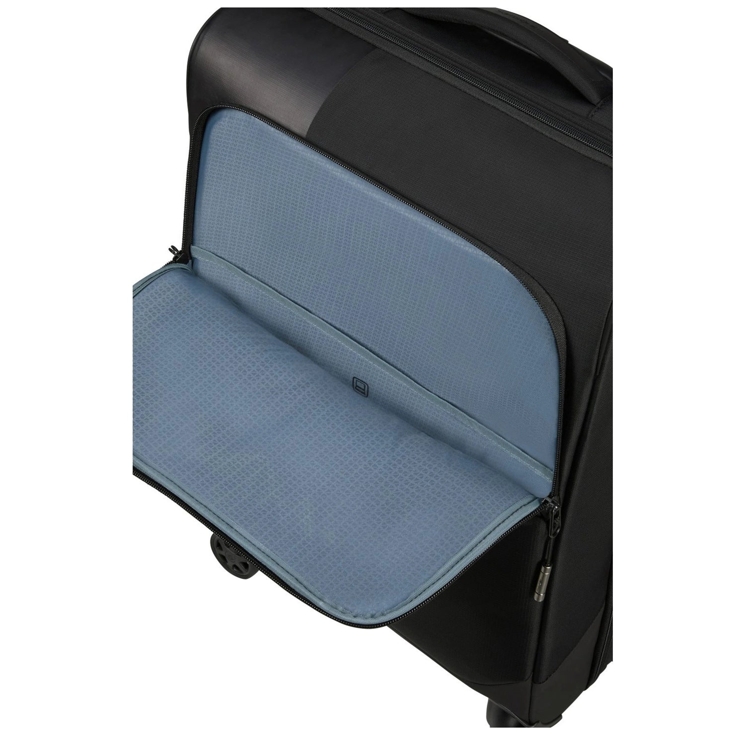 Thanks to four smooth-rolling wheels, you can easily maneuver through airports, train stations, and narrow streets. The black accents combined with the Ocean Blue color give it a contemporary and fresh look.