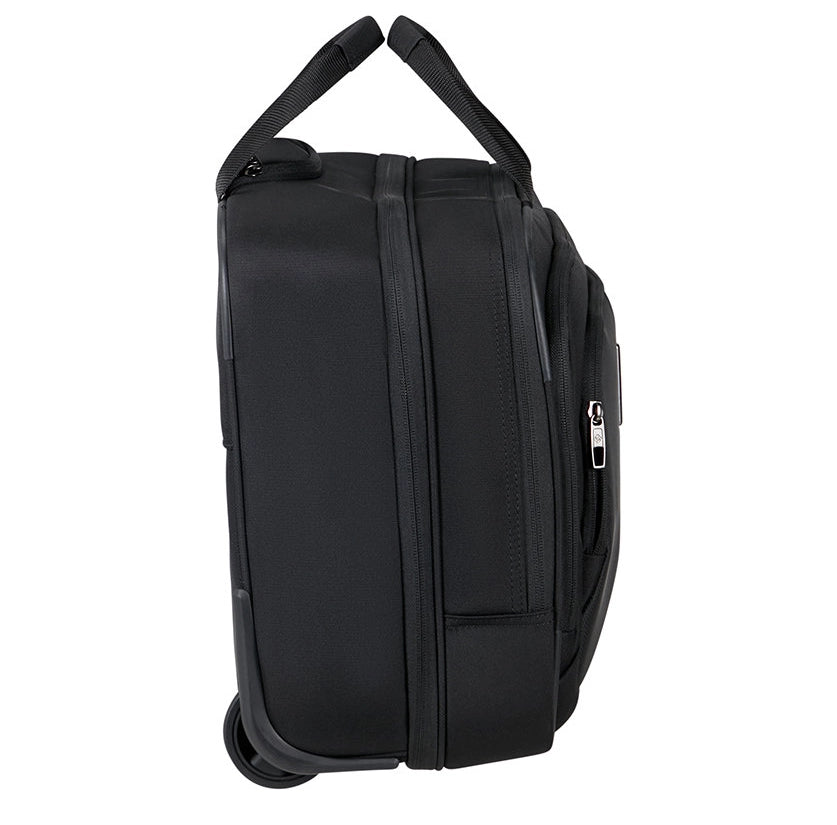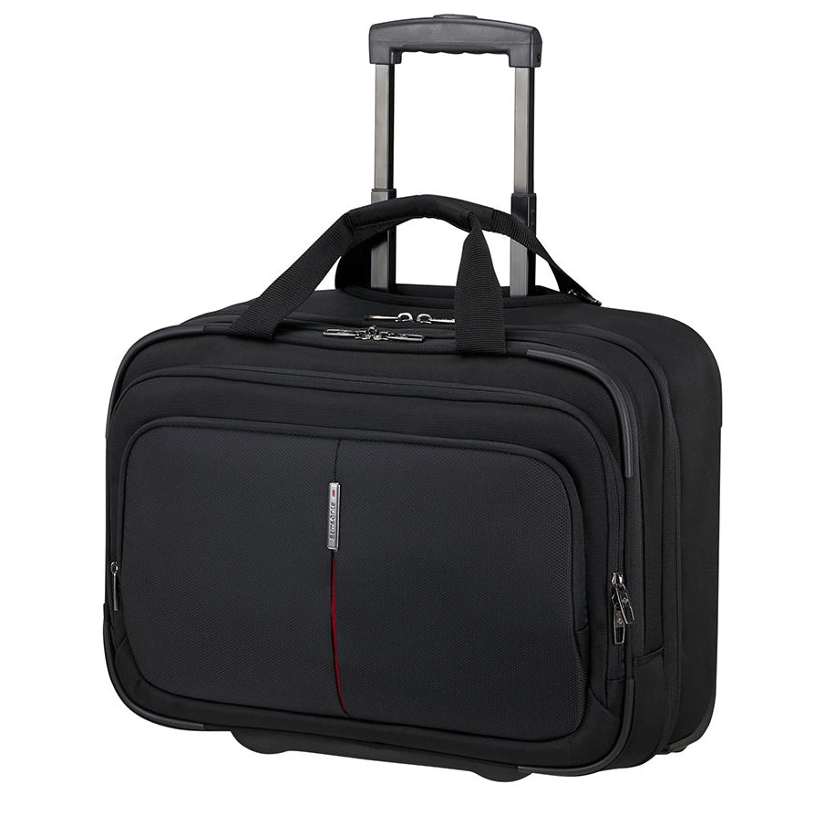 The Samsonite GuardIT Rolling Tote 17.3'' is a stylish and functional pilot case with round red accents. Thanks to the two wheels and the extendable pull rod, the case moves smoothly and powerfully. For extra flexibility, it can also be carried by hand or easily attached to the pull rod of another case.