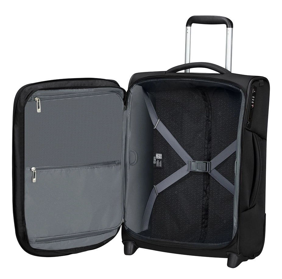 The Samsonite Respark Upright 55 Expandable combines modern design with durable materials and practical functionality. This two-wheeled carry-on suitcase is ideal for both business travelers and holidaymakers looking for reliability, light weight, and eco-friendly quality.