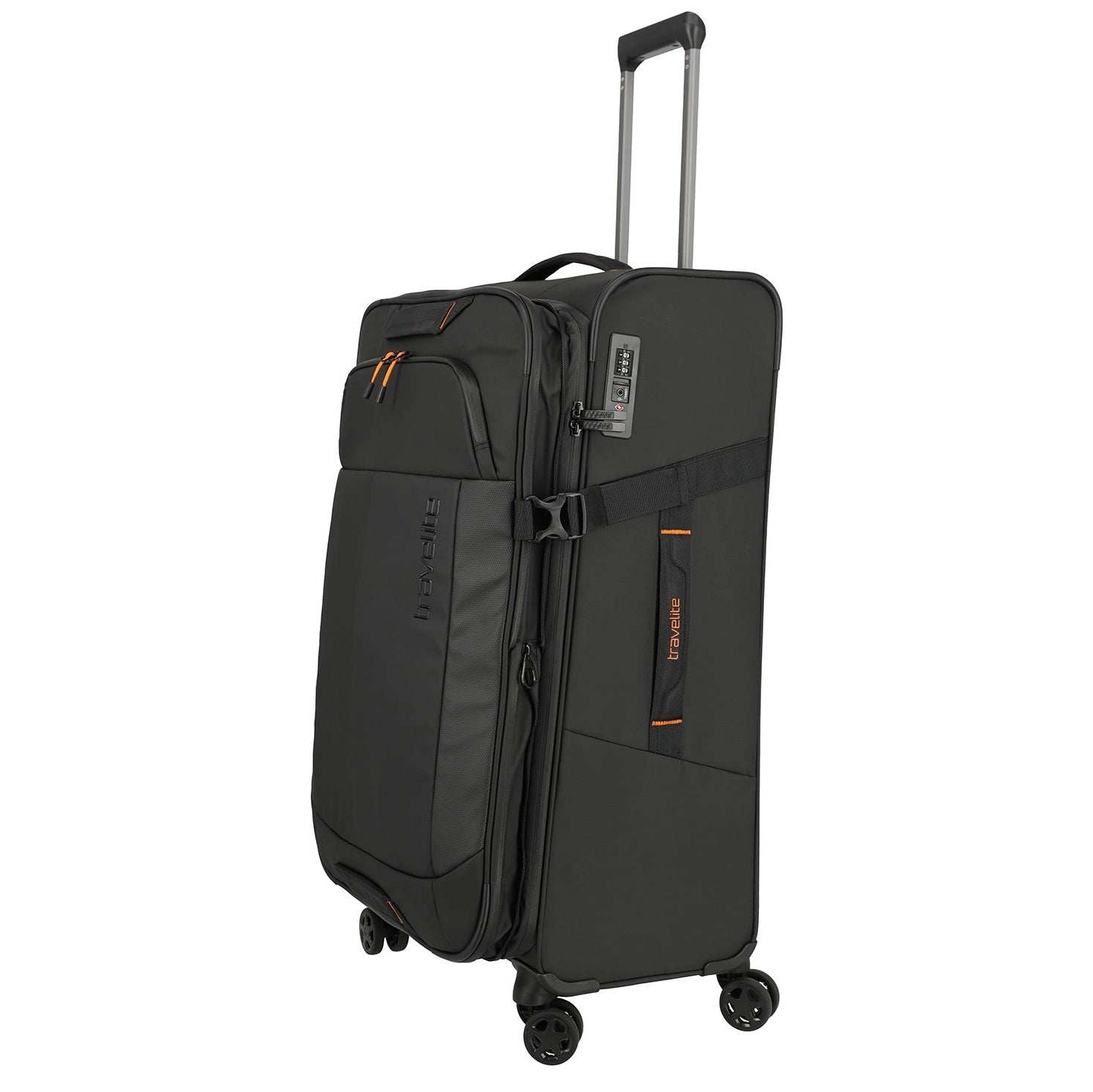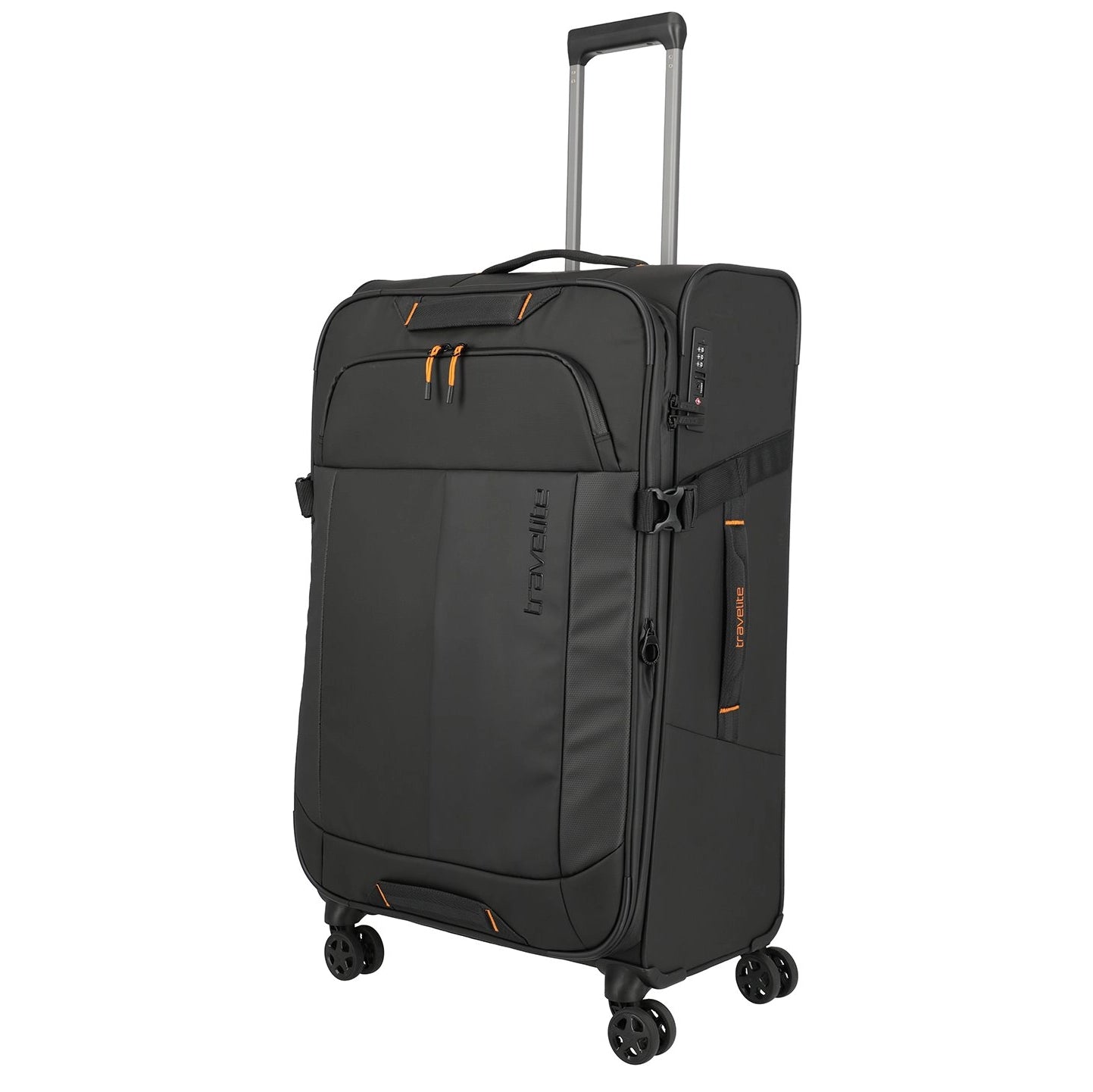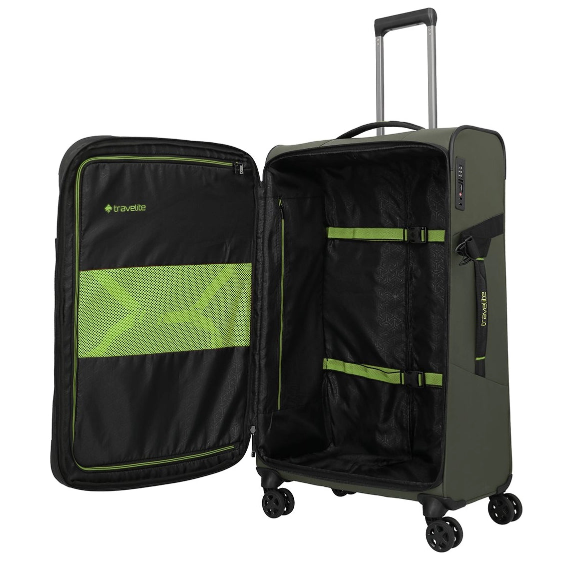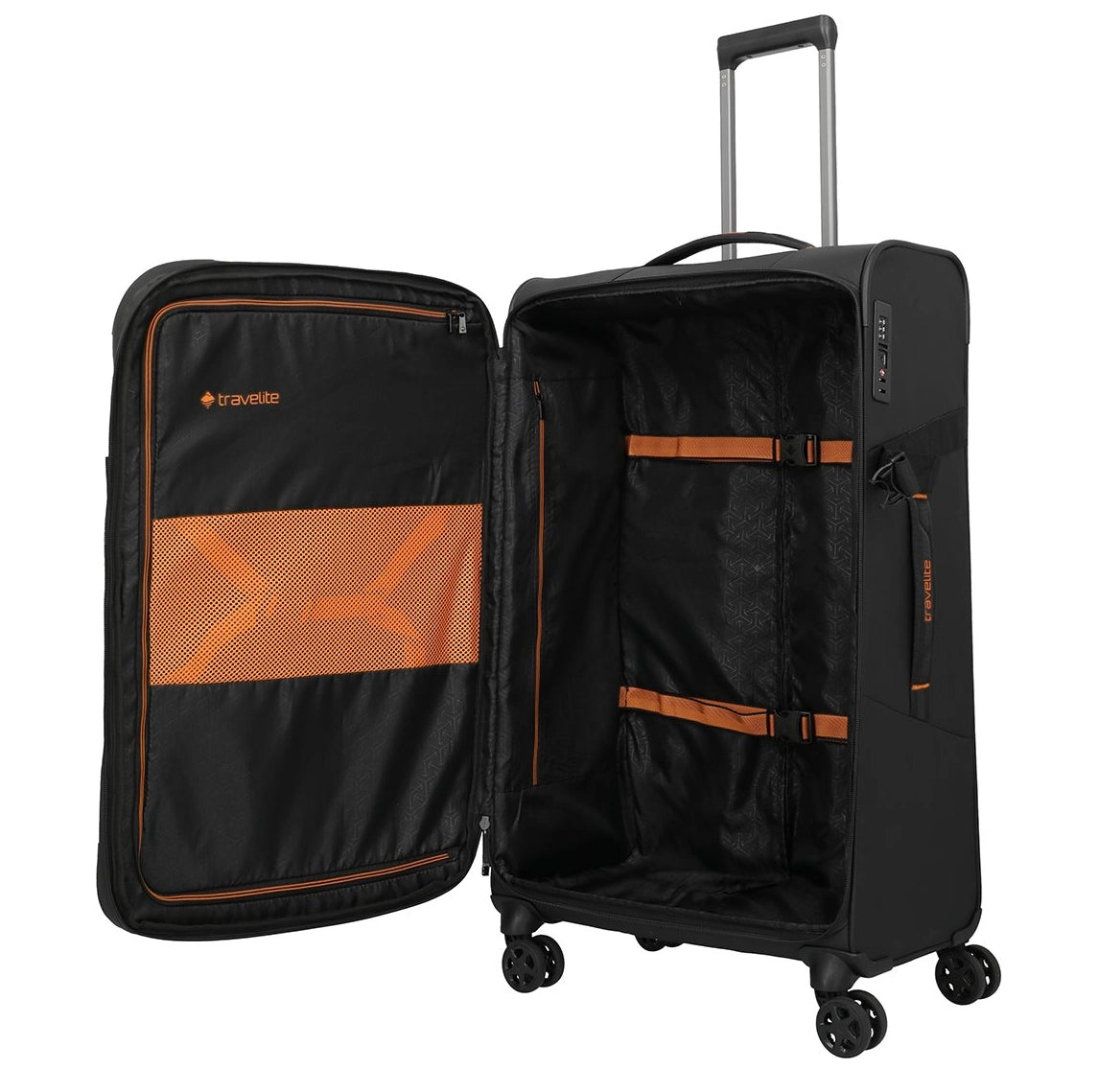 The Air Base Spinner 55 Hand Luggage Super Light from Travelite features four smooth double wheels. It also has an extendable pull rod and handles, so the suitcase can be transported very comfortably. On the inside there are two large lockable compartments with crossed packing straps and 2 extra zip pockets.