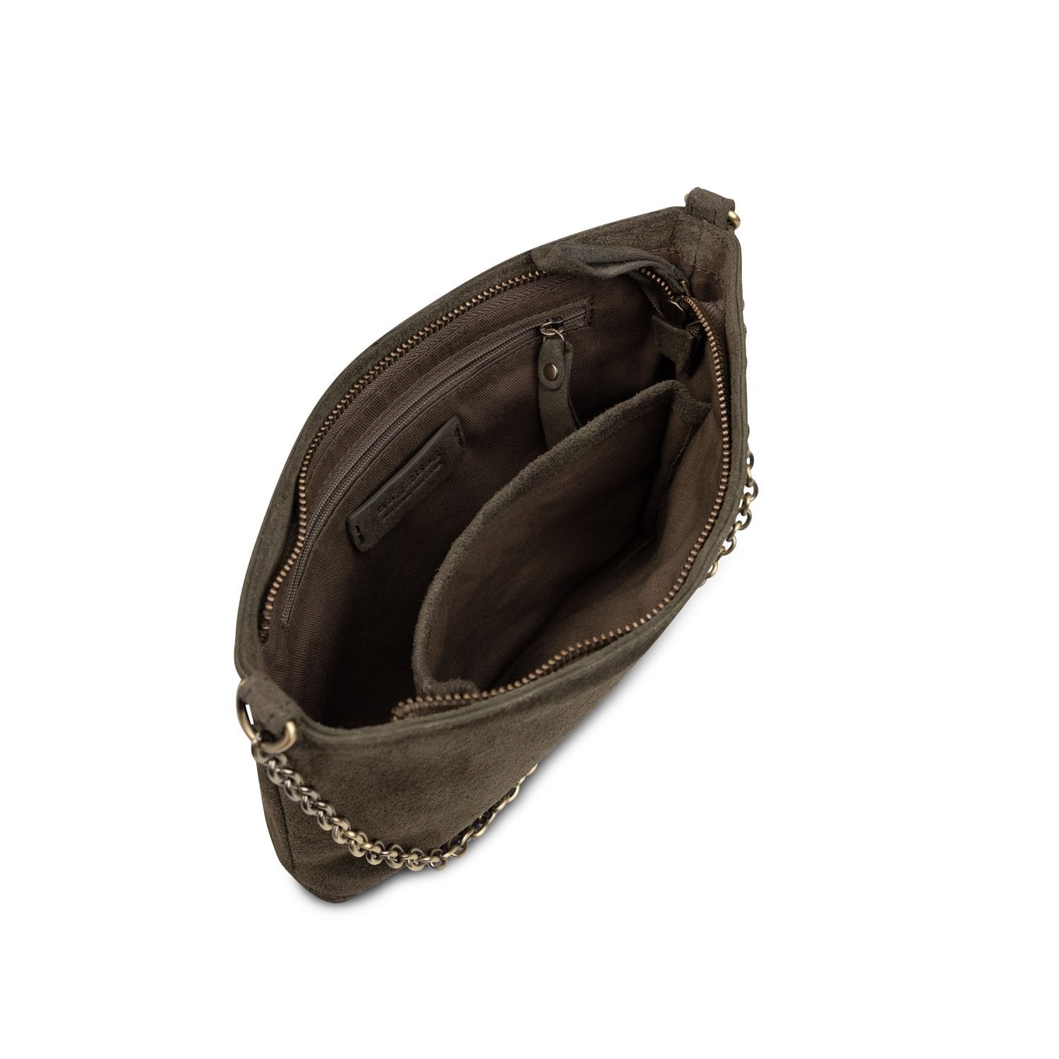 Are you charmed by the luxurious look of the Sala, but looking for a smaller model? Vasto is the perfect alternative. This compact suede bag has the same chic look, with the striking detail of the decorative chain that also serves as a short shoulder strap. Do you prefer to wear hands-free? Then the long, adjustable shoulder strap provides extra comfort.