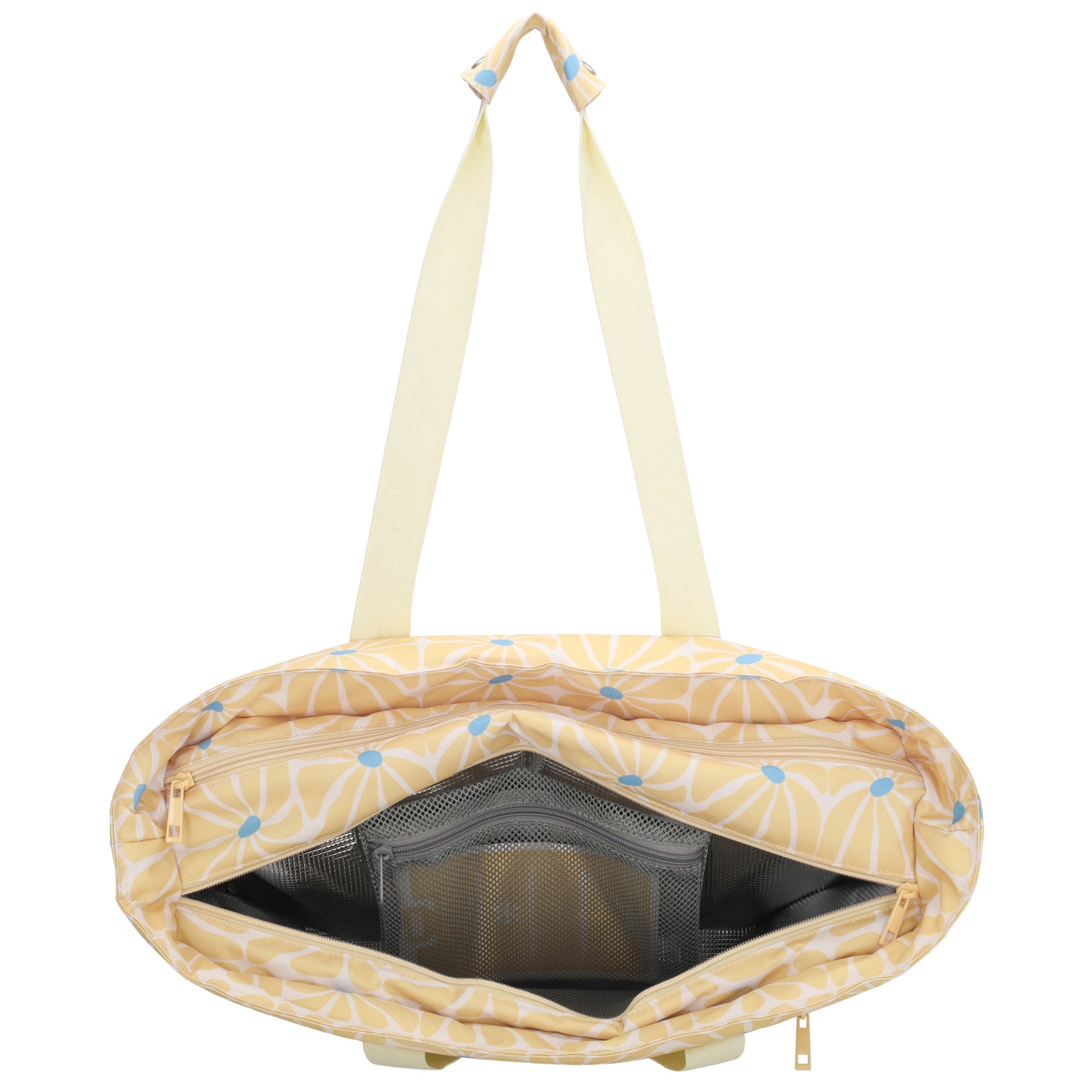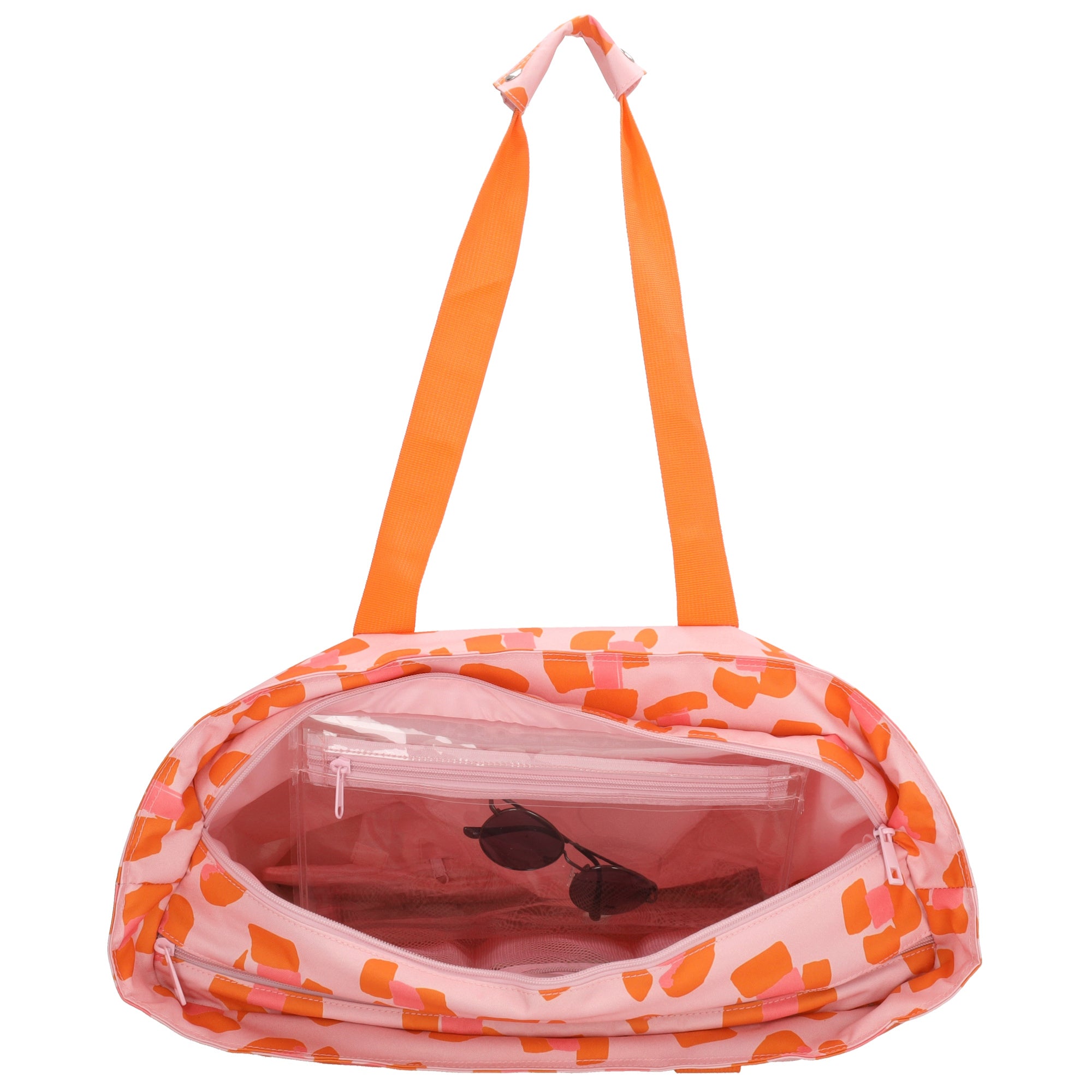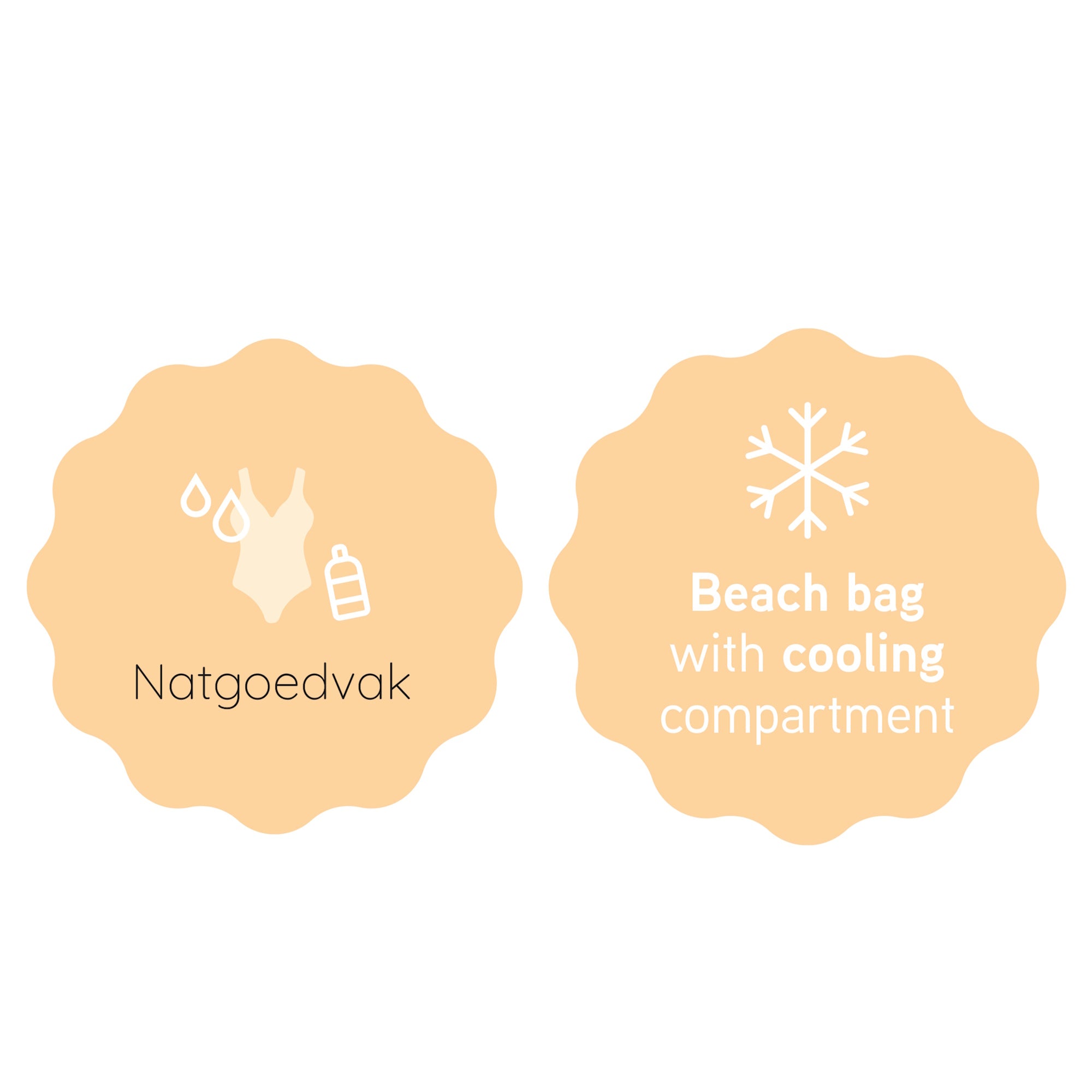 The bag is divided into two main compartments, each with its own function. The insulated cooler compartment keeps your drinks and snacks refreshingly cool, while the wet compartment is perfect for damp towels or swimwear. In addition, the bag features two zippered pockets on the front and back, ideal for items you want to keep within easy reach.