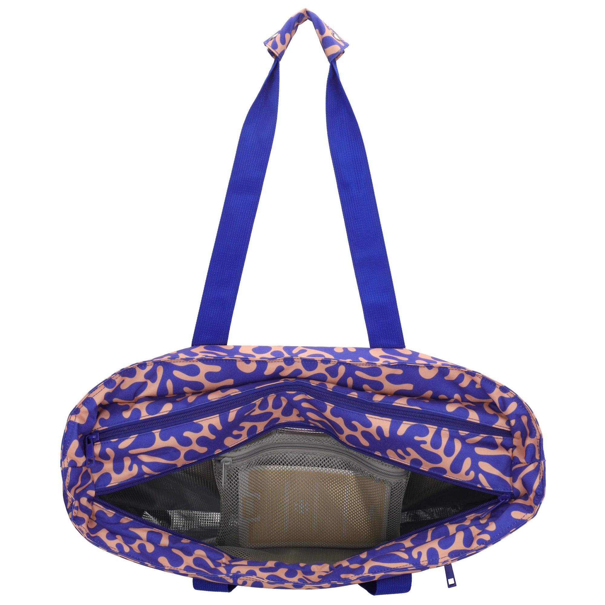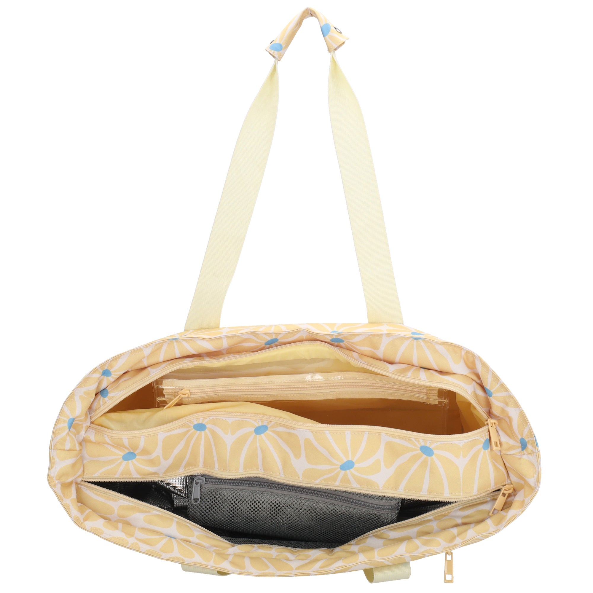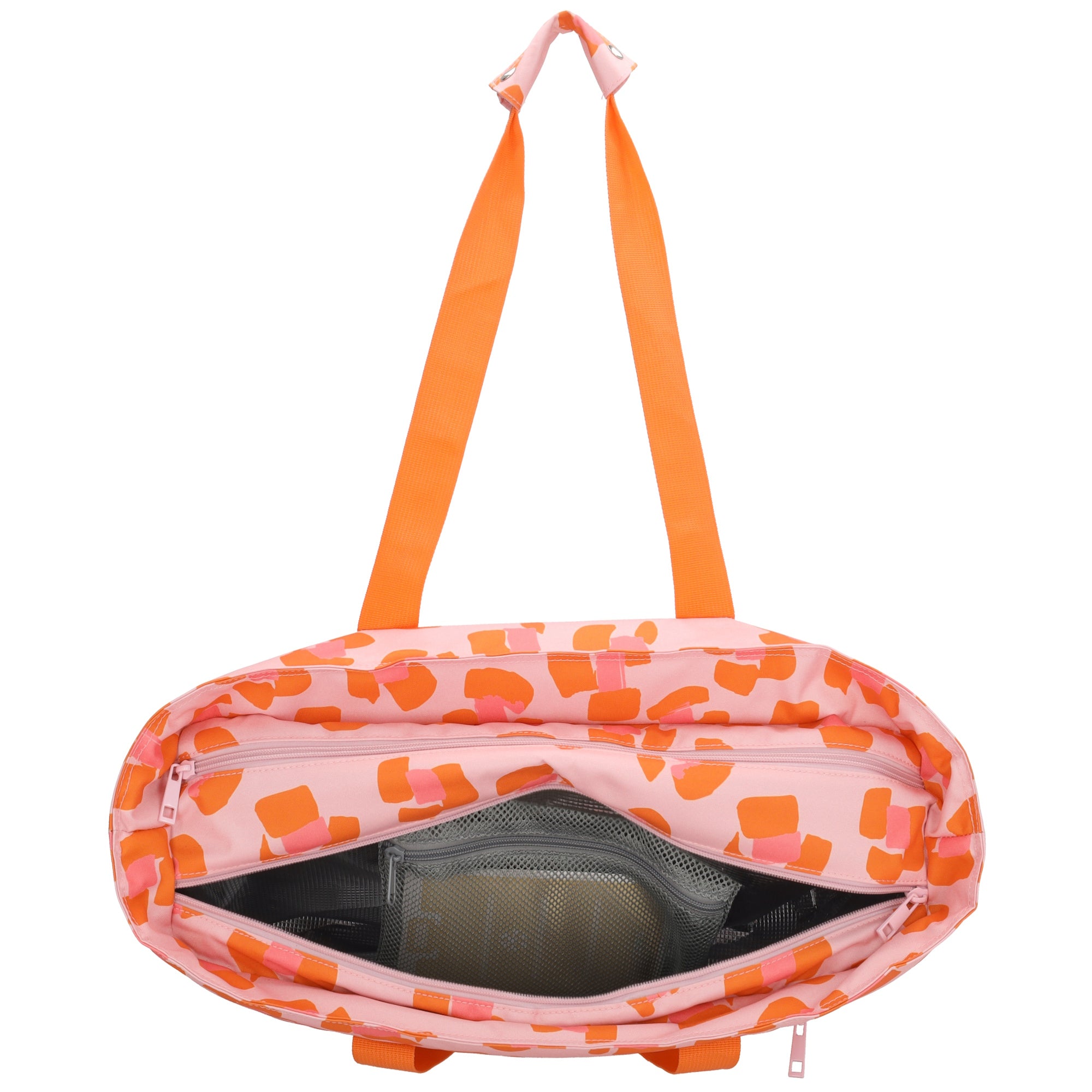 The bag is divided into two main compartments, each with its own function. The insulated cooler compartment keeps your drinks and snacks refreshingly cool, while the wet compartment is perfect for damp towels or swimwear. In addition, the bag features two zippered pockets on the front and back, ideal for items you want to keep within easy reach.